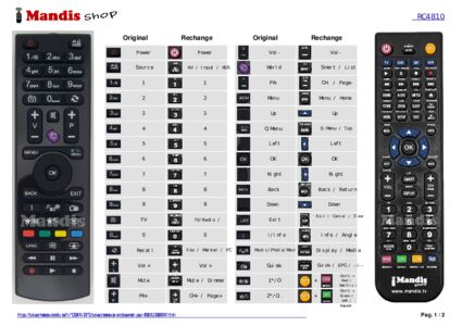 Un document est inclus pour vous aider à utiliser facilement la nouvelle télécommande, en indiquant la correspondance des boutons.
