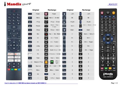 Un document est inclus pour vous aider à utiliser facilement la nouvelle télécommande, en indiquant la correspondance des boutons.