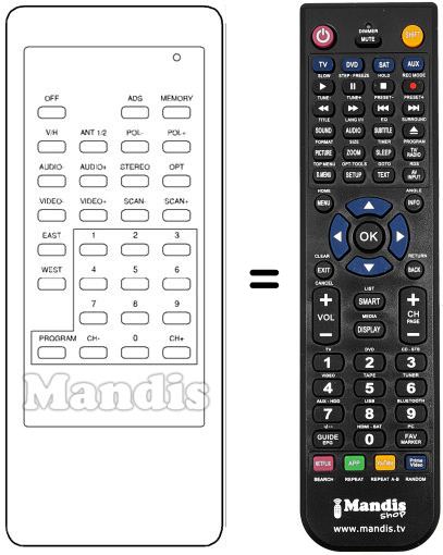 Télécommande qui remplace celle d'origine car elle possède les mêmes fonctions.