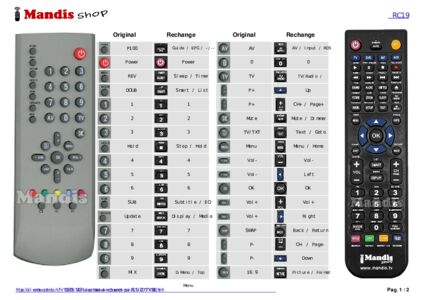 Cette télécommande remplace entièrement votre RCMOD 1 (XKU187R) et offre toutes les fonctions de l'originale.