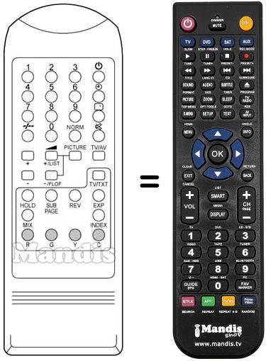 Télécommande qui remplace celle d'origine car elle possède les mêmes fonctions.
