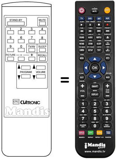 Télécommande qui remplace celle d'origine car elle possède les mêmes fonctions.