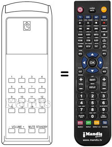 Télécommande qui remplace celle d'origine car elle possède les mêmes fonctions.