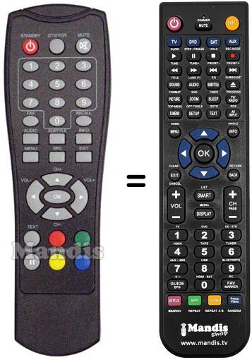 Télécommande qui remplace celle d'origine car elle possède les mêmes fonctions.