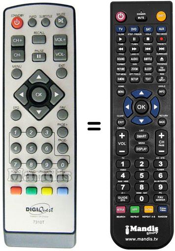 Télécommande qui remplace celle d'origine car elle possède les mêmes fonctions.