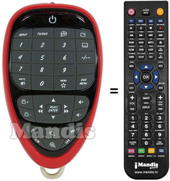 Télécommande qui remplace celle d'origine car elle possède les mêmes fonctions.