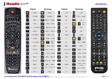 Un document est inclus pour vous aider à utiliser facilement la nouvelle télécommande, en indiquant la correspondance des boutons.
