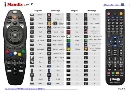 Un document est inclus pour vous aider à utiliser facilement la nouvelle télécommande, en indiquant la correspondance des boutons.