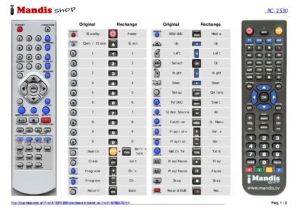 Un document est inclus pour vous aider à utiliser facilement la nouvelle télécommande, en indiquant la correspondance des boutons.