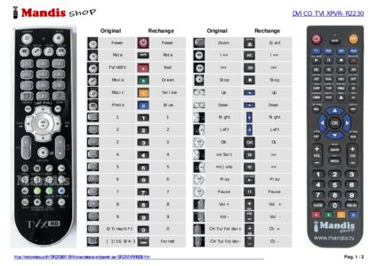 Cette télécommande remplace entièrement votre TVIX PVR-R2230 et offre toutes les fonctions de l'originale.