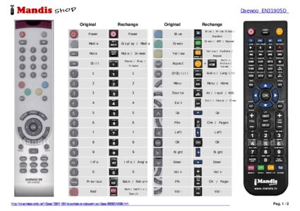 Un document est inclus pour vous aider à utiliser facilement la nouvelle télécommande, en indiquant la correspondance des boutons.