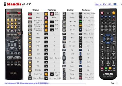 Un document est inclus pour vous aider à utiliser facilement la nouvelle télécommande, en indiquant la correspondance des boutons.
