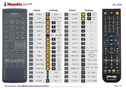 Cette télécommande remplace entièrement votre RC 129A et offre toutes les fonctions de l'originale.