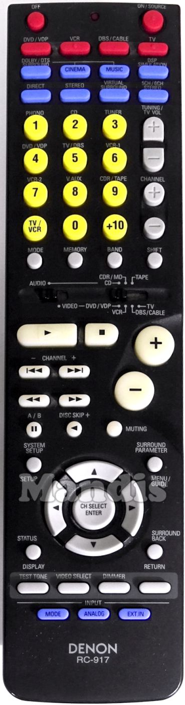 Télécommandes équivalentes qui remplacent la télécommande DENON RC-917 (9630100203) et possèdent exactement les mêmes fonctions :