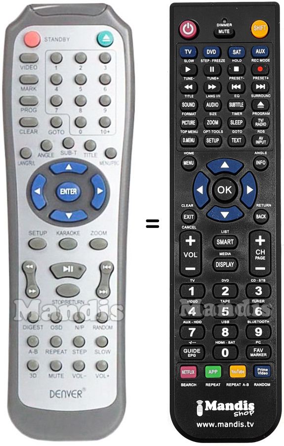 Accueil > Marques > Télécommandes Denver > Télécommande pour DENVER DVD706K