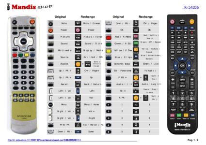 Un document est inclus pour vous aider à utiliser facilement la nouvelle télécommande, en indiquant la correspondance des boutons.