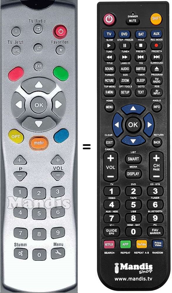 Télécommande qui remplace celle d'origine car elle possède les mêmes fonctions.