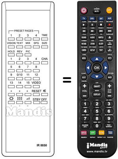Télécommande qui remplace celle d'origine car elle possède les mêmes fonctions.