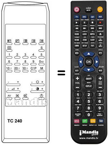 Télécommande qui remplace celle d'origine car elle possède les mêmes fonctions.