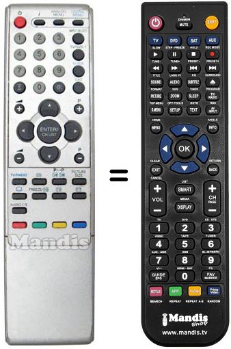 Télécommande qui remplace celle d'origine car elle possède les mêmes fonctions.