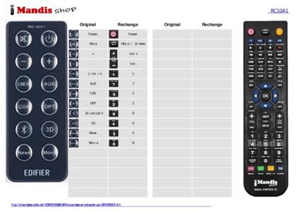 Un document est inclus pour vous aider à utiliser facilement la nouvelle télécommande, en indiquant la correspondance des boutons.