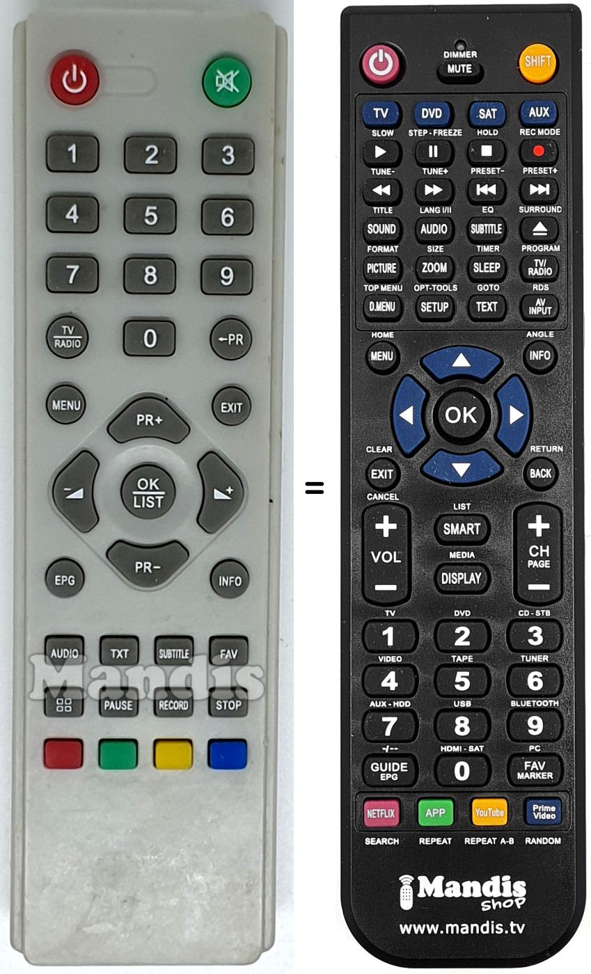 Télécommande qui remplace celle d'origine car elle possède les mêmes fonctions.