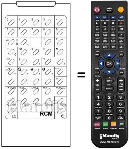 Télécommande qui remplace celle d'origine car elle possède les mêmes fonctions.