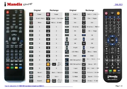 Un document est inclus pour vous aider à utiliser facilement la nouvelle télécommande, en indiquant la correspondance des boutons.