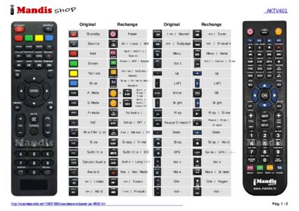 Un document est inclus pour vous aider à utiliser facilement la nouvelle télécommande, en indiquant la correspondance des boutons.