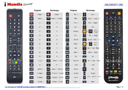 Un document est inclus pour vous aider à utiliser facilement la nouvelle télécommande, en indiquant la correspondance des boutons.