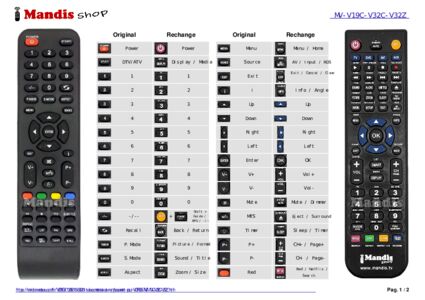 Cette télécommande remplace entièrement votre V19C02D V32C02D V32Z et offre toutes les fonctions de l'originale.