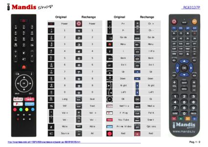 Un document est inclus pour vous aider à utiliser facilement la nouvelle télécommande, en indiquant la correspondance des boutons.