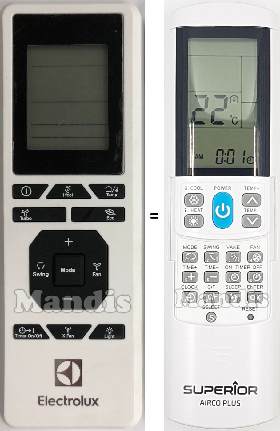 Accueil > Marques climatiseurs > Liste de télécommandes pour climatiseurs > Télécommande universelle ELECTROLUX Aircoplus (42530)