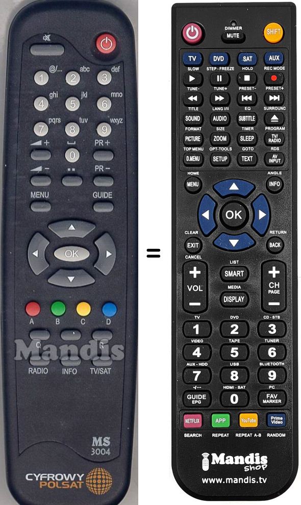 Télécommande qui remplace celle d'origine car elle possède les mêmes fonctions.