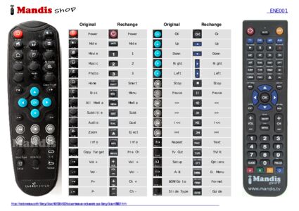 Un document est inclus pour vous aider à utiliser facilement la nouvelle télécommande, en indiquant la correspondance des boutons.