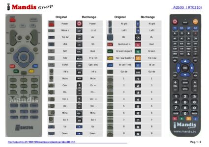 Un document est inclus pour vous aider à utiliser facilement la nouvelle télécommande, en indiquant la correspondance des boutons.