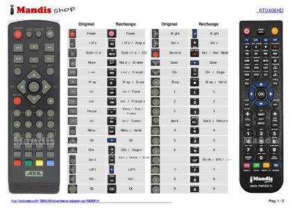 Un document est inclus pour vous aider à utiliser facilement la nouvelle télécommande, en indiquant la correspondance des boutons.