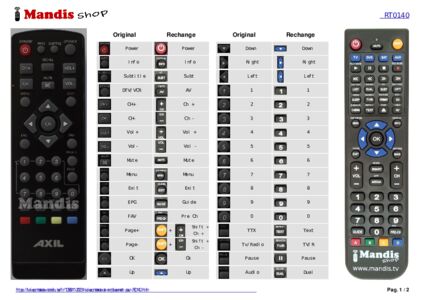 Un document est inclus pour vous aider à utiliser facilement la nouvelle télécommande, en indiquant la correspondance des boutons.
