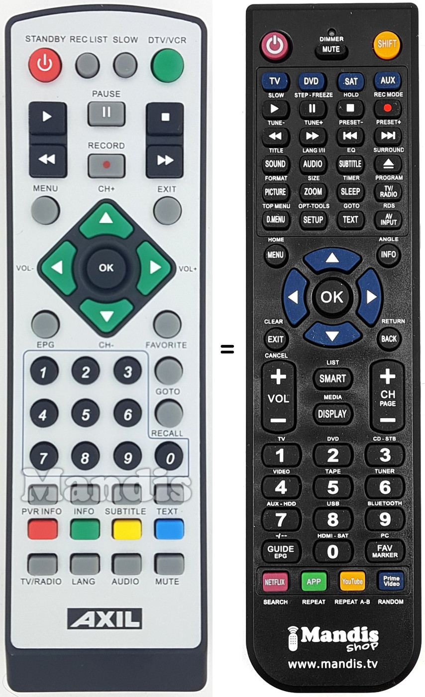 Télécommande qui remplace celle d'origine car elle possède les mêmes fonctions.