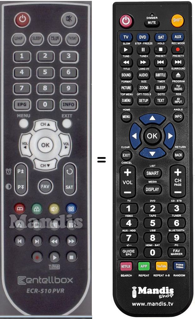 Télécommande qui remplace la télécommande d'origine ECR-510-PVR car elle possède les mêmes fonctions.