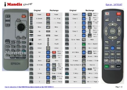 Accueil > Marques > Télécommandes Epson > Télécommande pour EPSON 1470167 (147016700)