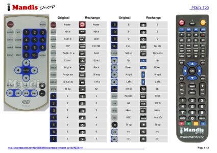 Cette télécommande remplace entièrement votre PDVD-720 et offre toutes les fonctions de l'originale.