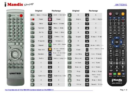 Un document est inclus pour vous aider à utiliser facilement la nouvelle télécommande, en indiquant la correspondance des boutons.