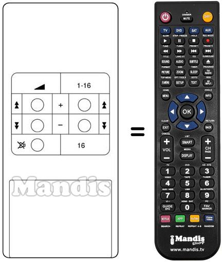 Télécommande qui remplace celle d'origine car elle possède les mêmes fonctions.