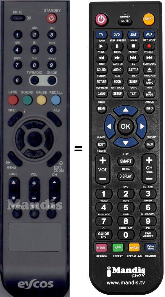 Télécommande qui remplace celle d'origine car elle possède les mêmes fonctions.