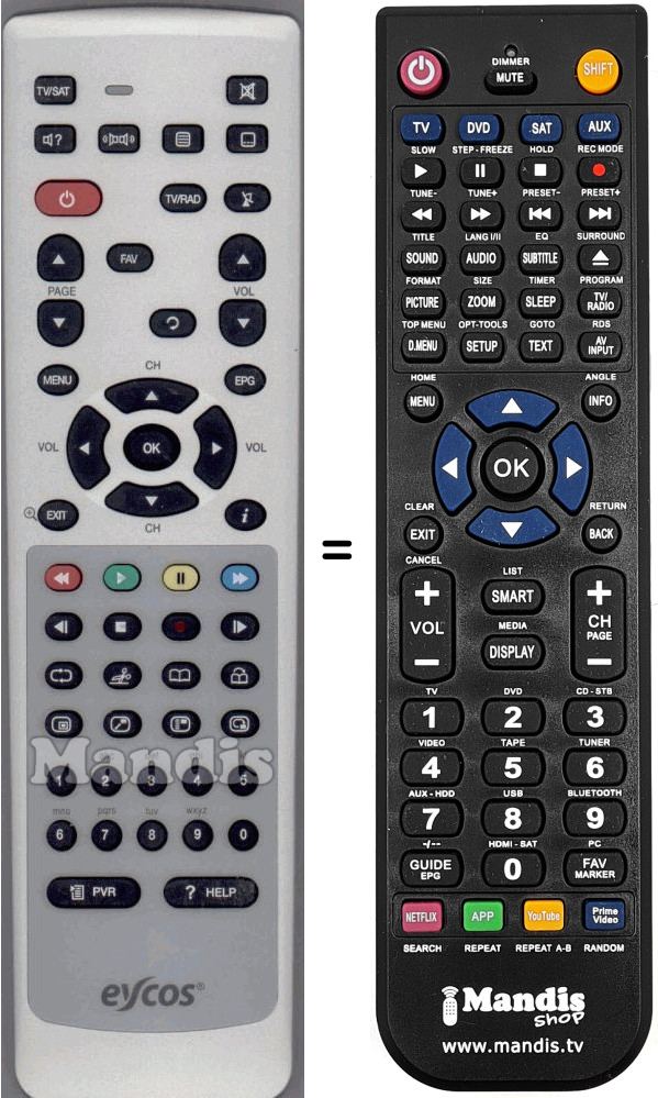 Télécommande qui remplace celle d'origine car elle possède les mêmes fonctions.