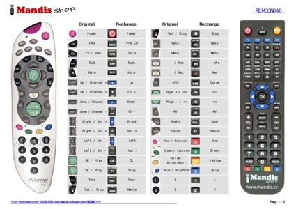 Un document est inclus pour vous aider à utiliser facilement la nouvelle télécommande, en indiquant la correspondance des boutons.