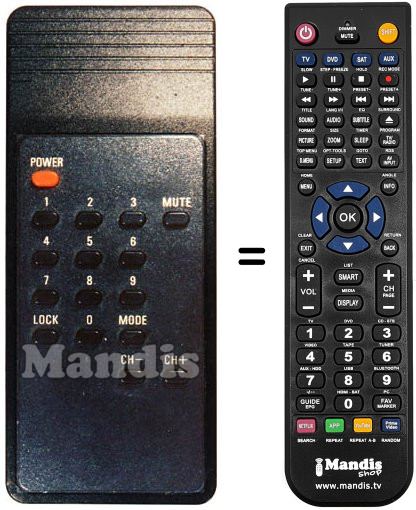 Télécommande qui remplace celle d'origine car elle possède les mêmes fonctions.