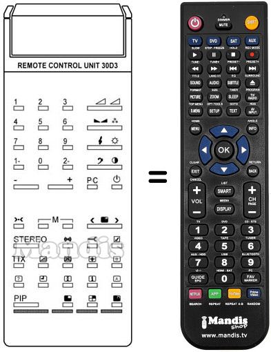 Télécommande qui remplace celle d'origine car elle possède les mêmes fonctions.
