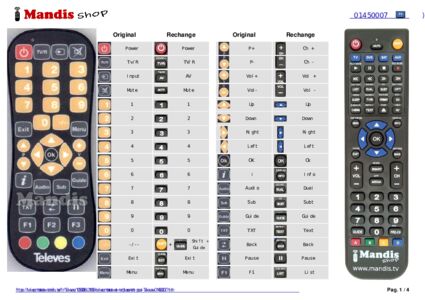 Un document est inclus pour vous aider à utiliser facilement la nouvelle télécommande, en indiquant la correspondance des boutons.